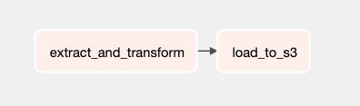 The above DAG demonstrates the pipeline for this project. Once the task of extracting and transforming is complete, it triggers the next task, which is the loading task, to store the file into AWS S3.